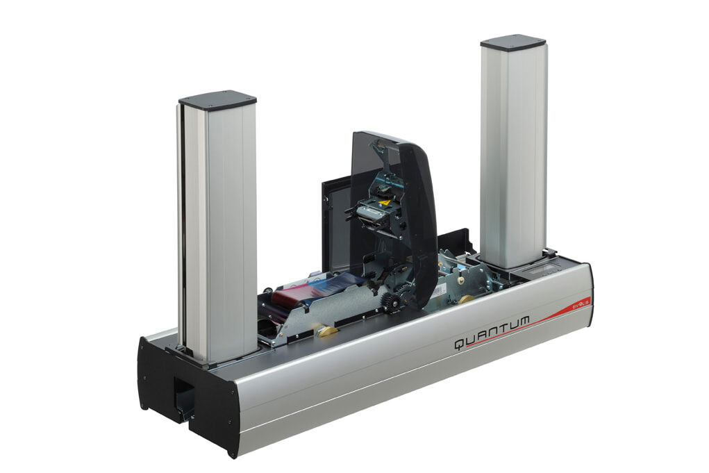 Thanks to its feed tray and stacker with a capacity of 500 cards each, the Quantum printer can deliver more than 1000 cards per hour in monochrome and more than 150 cards in colour. With the reversible encoding module that is independent from the print module, the car